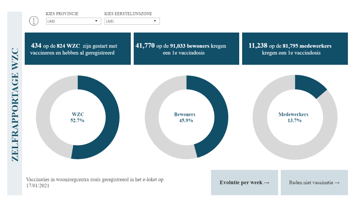 • Ze lopen iets achter: in realiteit zijn er al heel wat meer woonzorgcentra en meer mensen gevaccineerd, maar die woonzorgcentra moeten hun vaccinaties nog registeren of de data moet nog binnen komen.