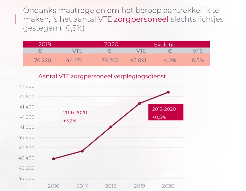 De grote uitdagingen van de zorg zijn, naast een correcte infrastructuur en IT, de organisatie van het zorgaanbod. Dat kan alleen als er voldoende zorgpersoneel is, dat is namelijk de grootste uitdaging. Ook personeelsretentie en bijgevolg attractiviteit moeten verbeteren, naast het harmoniseren van de statuten in de netwerken en een betere pensioenfinanciering.
